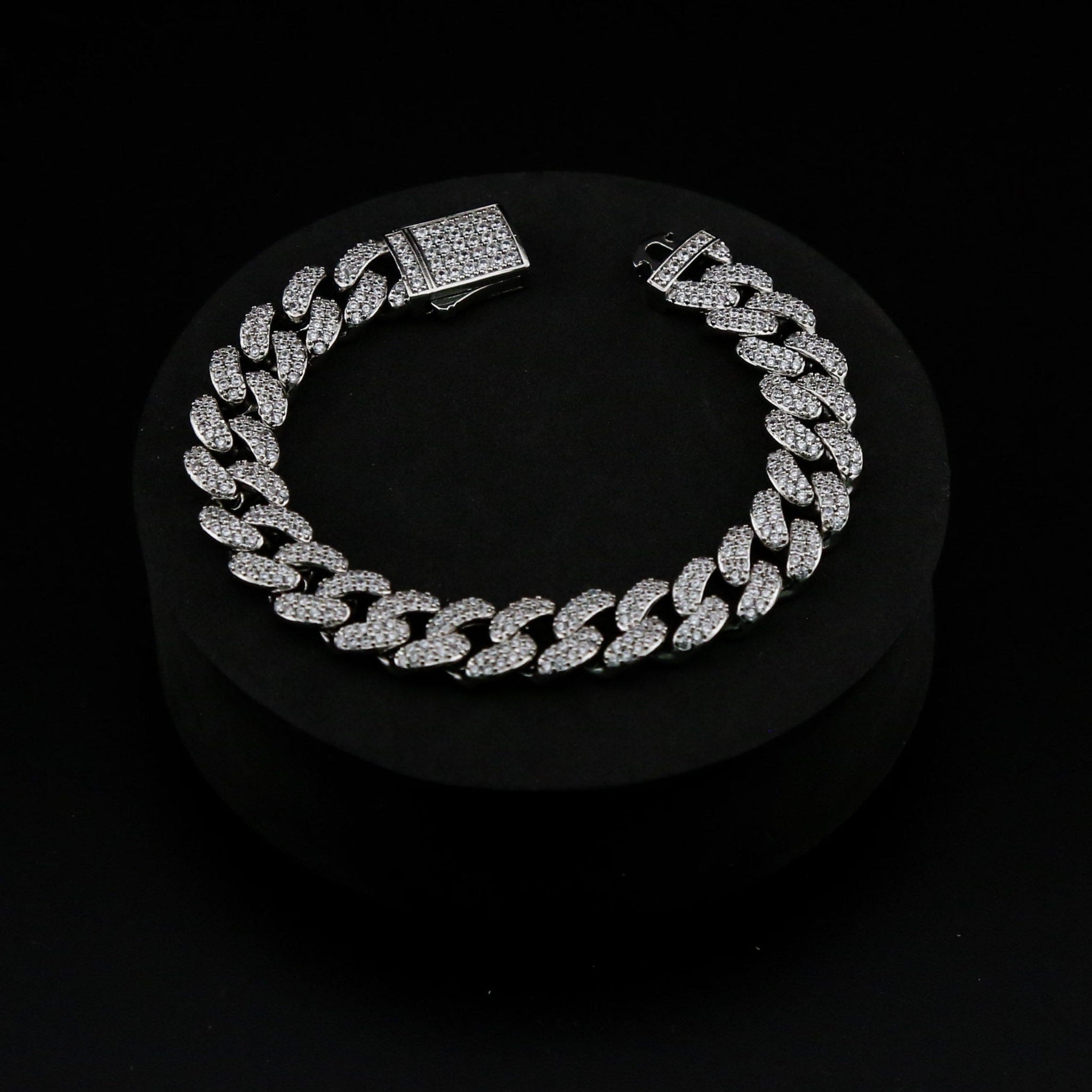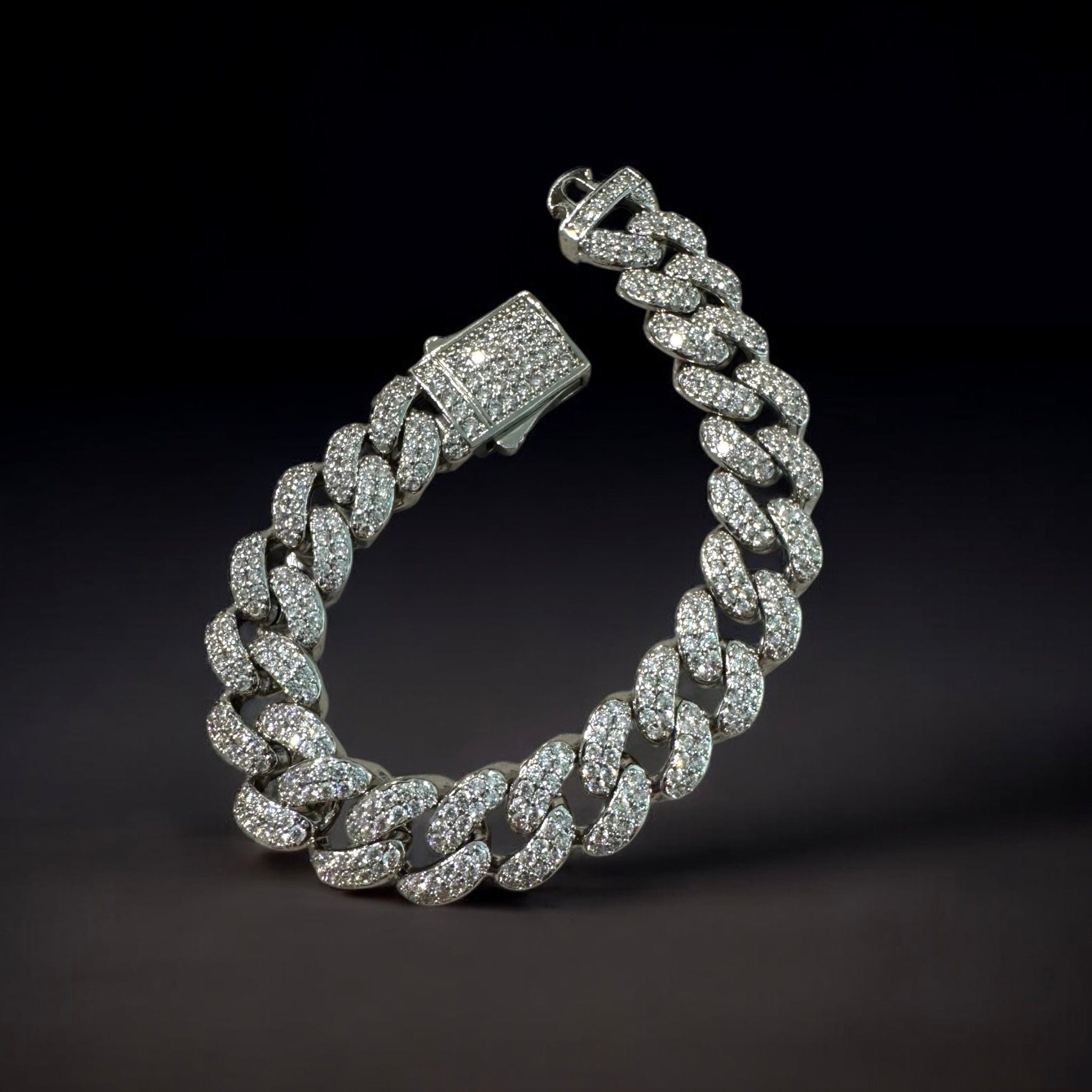 The Iced Out Cuban Link Bracelet takes our classic Cuban design and turns the shine all the way up. Every 12mm link is flooded with diamond simulants for an ice-cold sparkle that demands attention.