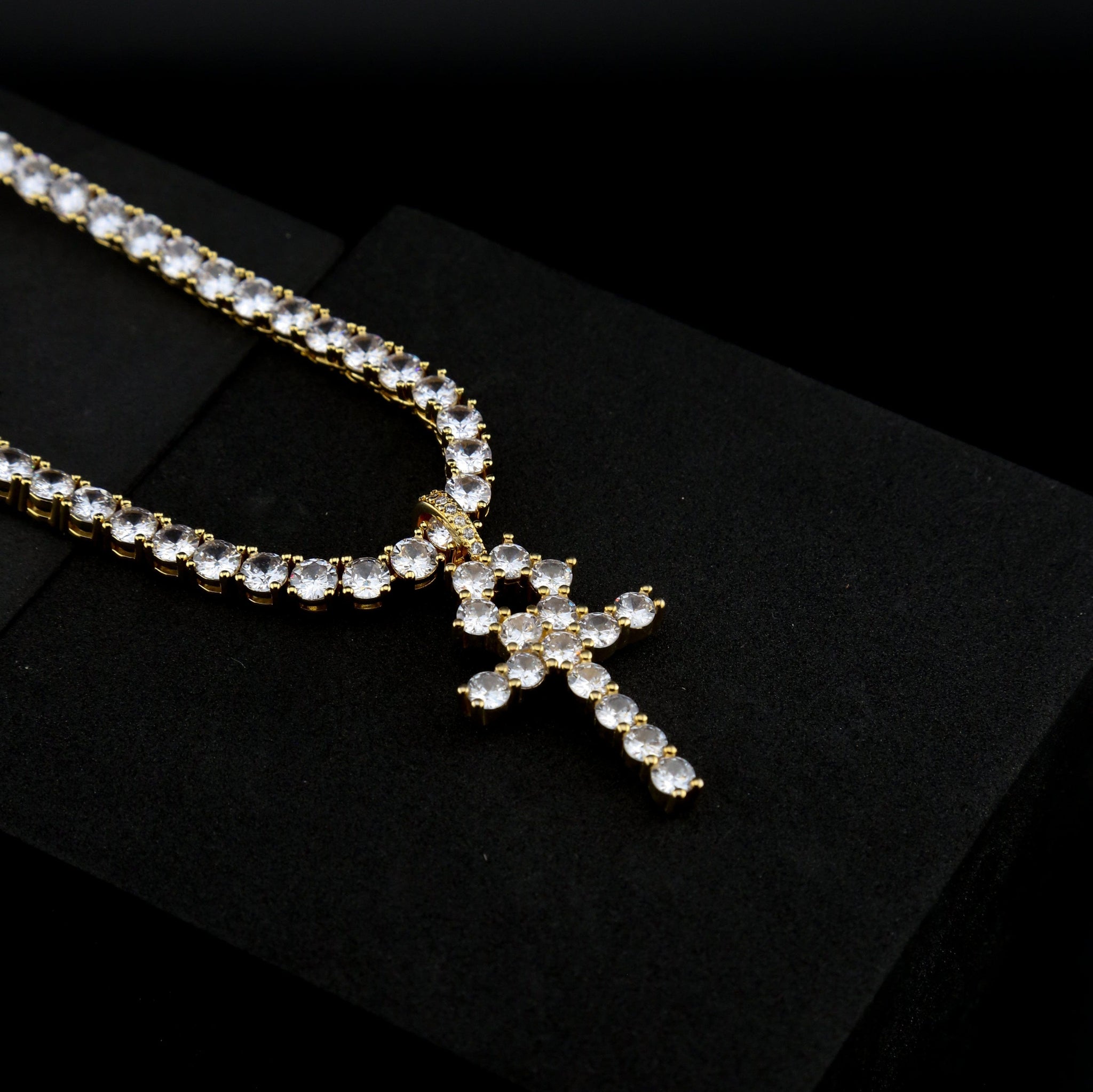 Our Diamond Anhk Cross Pendant is commonly paired with our tennis chain or rope chain. This is a popular and luxurious piece that can be worn in various occasions. Level up your fashion today!