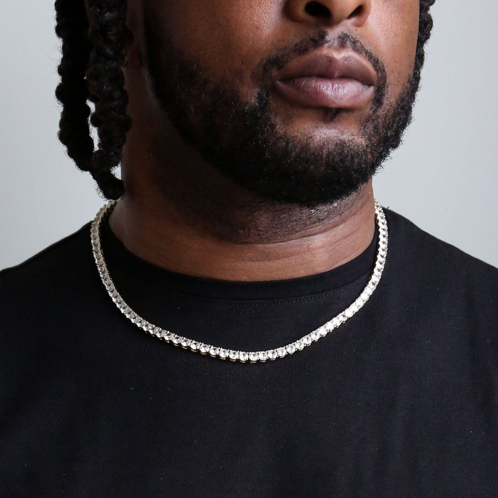 The 5mm Tennis Chain takes the classic tennis look and turns up the volume. With each diamond simulant that sparkles from every angle, this chain delivers a bold shine that refuses to be ignored. Perfect for nights out or when you want your fit to make an impact.