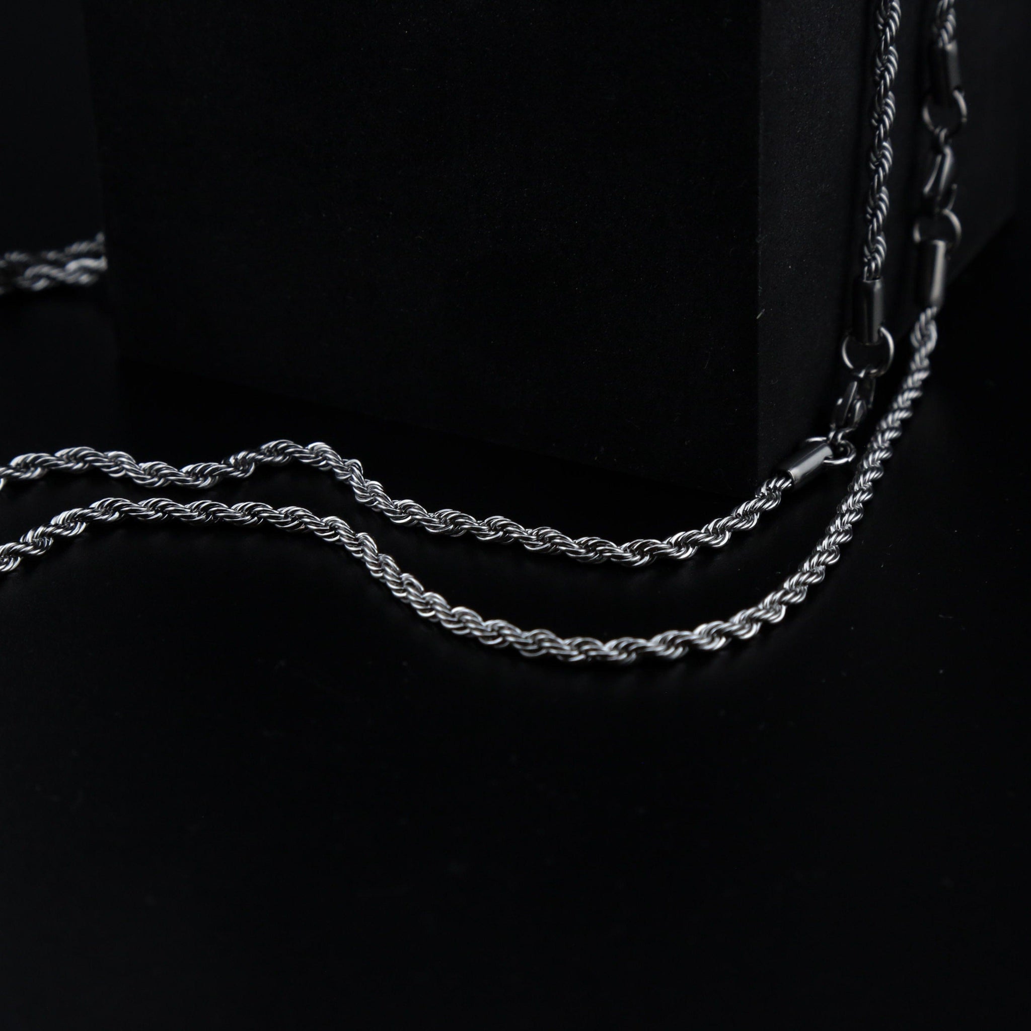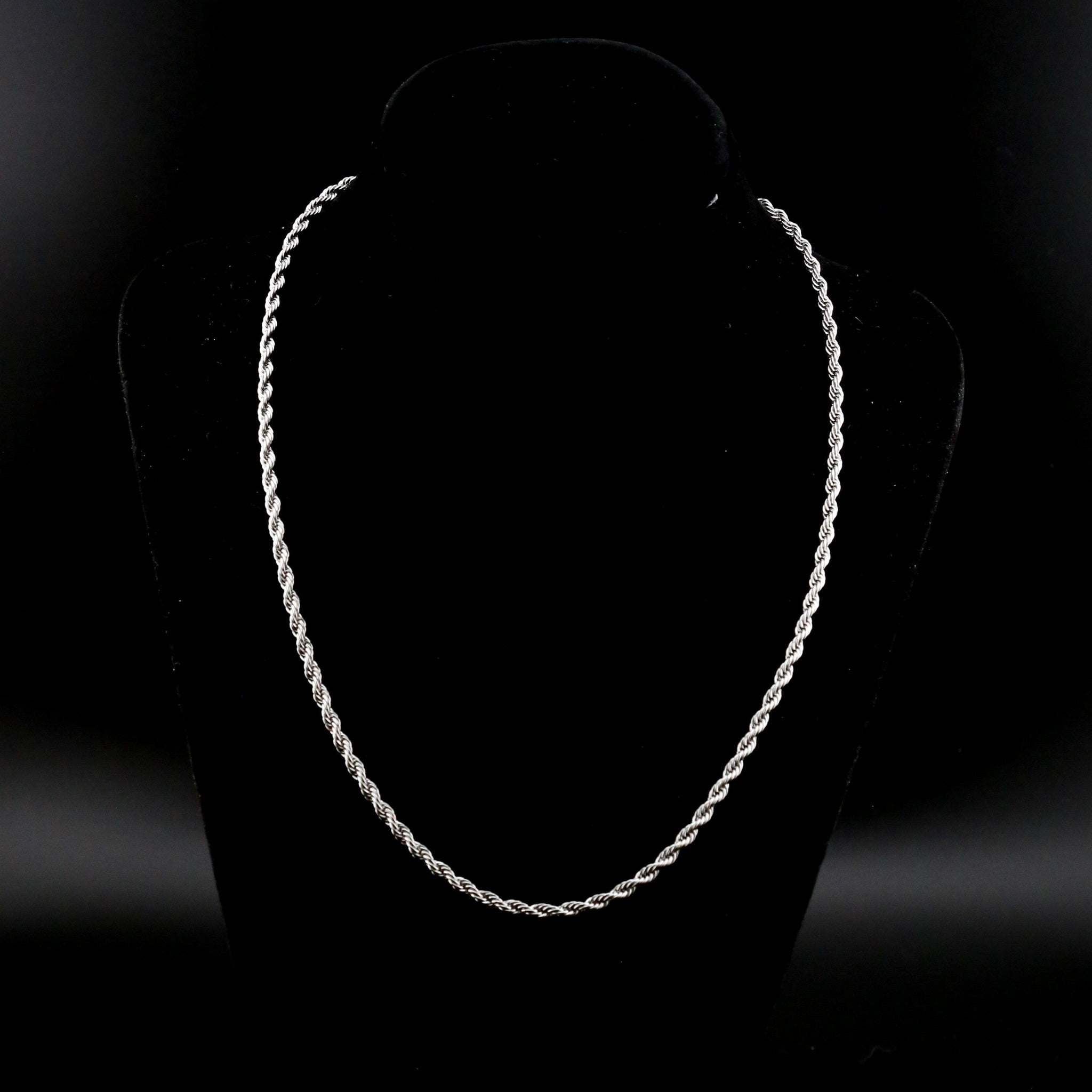 The 3mm Rope Chain is the definition of an essential piece. With its intricate twist design and brilliant shine, this chain is perfect to wear solo for a clean look or paired with pendants and other chains for a layered fit.