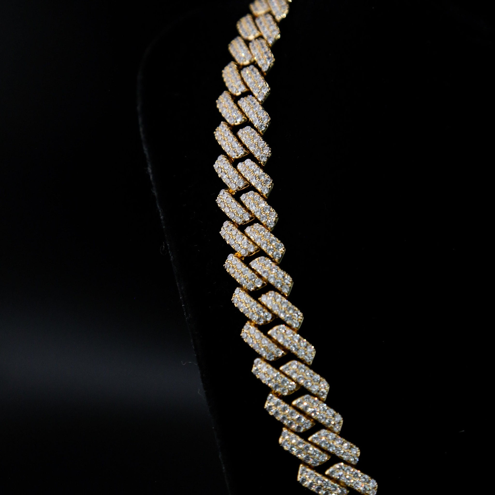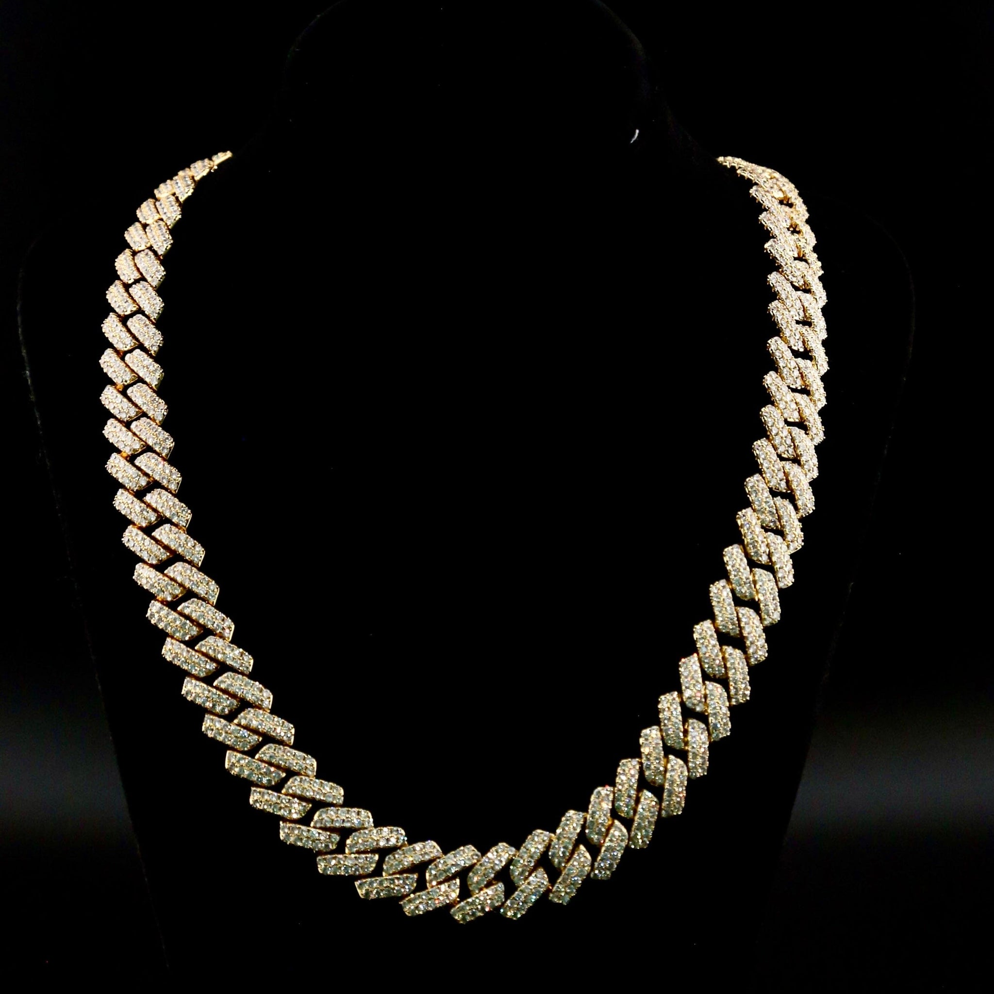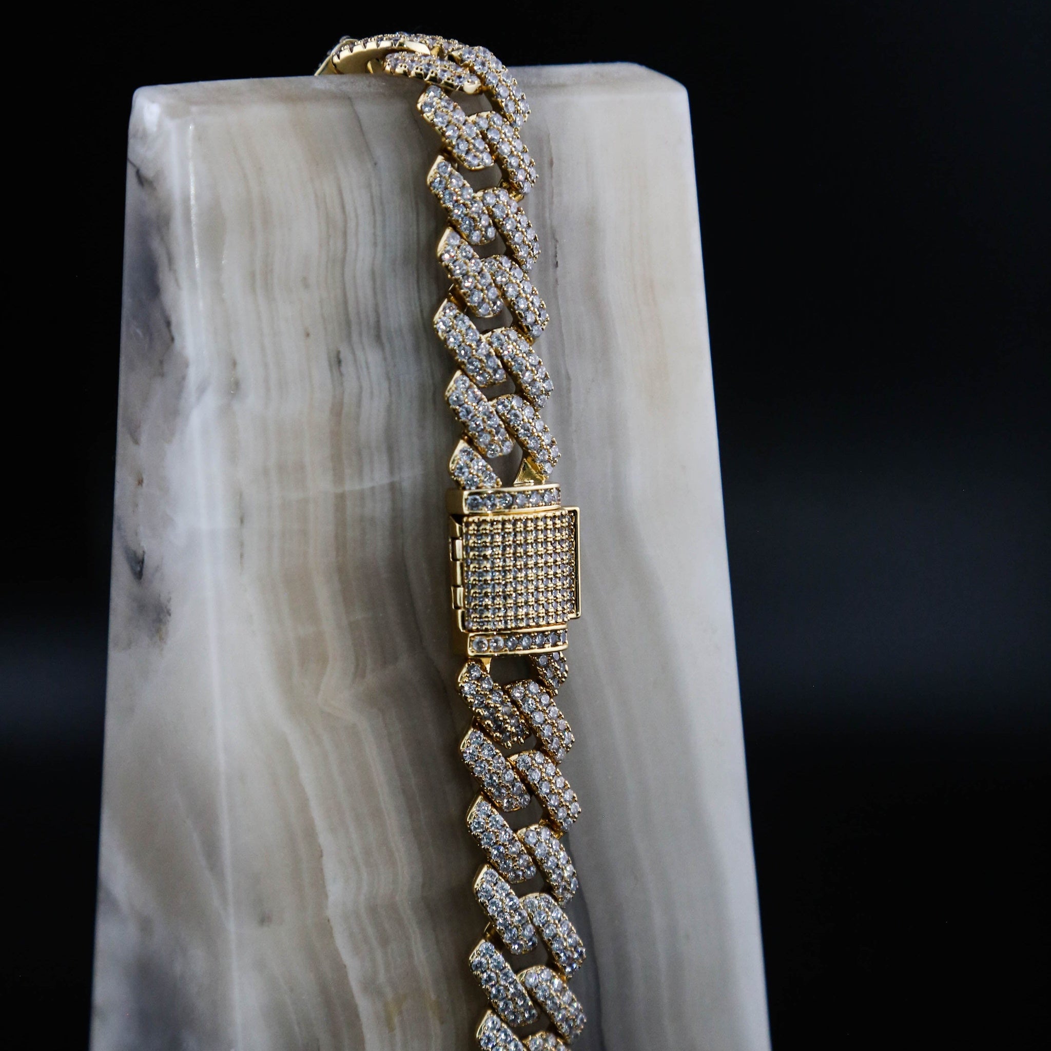 Iced Prong Cuban Link Chain in Gold - 12mm